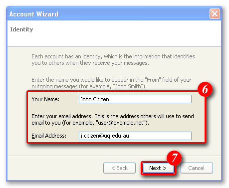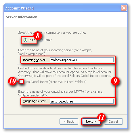 | 9)Enter 'mail.cedar-creek.com' in the 'Incoming Server' field, and 'smtp.cedar-creek.com' in the 'Outgoing Server' field. |
